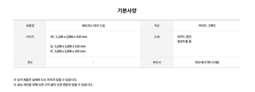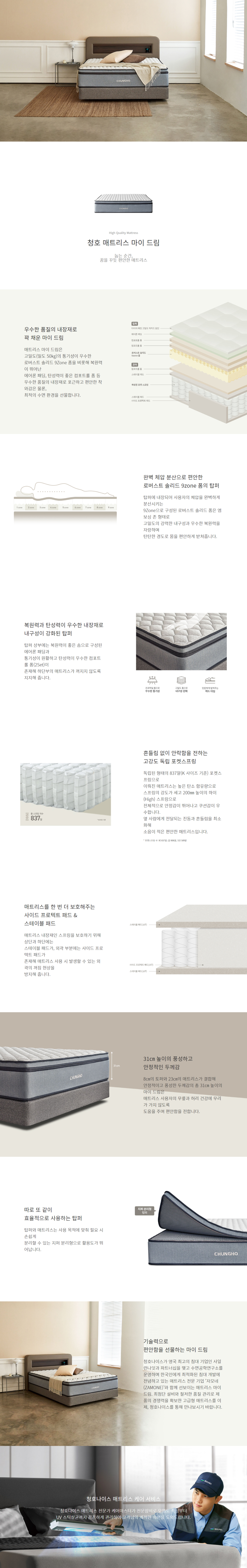 프레임 CL + 매트리스 마이 드림 청호나이스 [청호나이스] 스프링에어 쿠션형 프레임 CL + 매트리스 마이 드림 라이트그레이 SS/Q/K 제품분류 침대 매트리스 침대패키지 최저 렌탈가 월 47,800 (렌탈가) 제휴카드 할인가 월 (렌탈가) 5년 6년 슈퍼싱글 퀸 킹 슈퍼싱글 퀸 킹 관리주기 선택 방문관리/4개월 + 0원 할인 제휴카드 보기 렌탈신청 장바구니