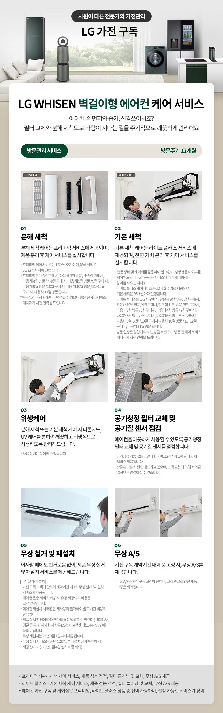 FQ18GC3EA1 LG전자구독 [LG] 휘센 AI 오브제컬렉션 쿨 프로 3시리즈 스탠드 에어컨 18평형 에센스화이트 제품분류 에어컨 평형 16~20평형 타입 스탠드형 AS기간 렌탈기간내 최저 렌탈가 월 49,900 (렌탈가) 제휴카드 할인가 월 (렌탈가) 3년 4년 5년 6년 방문관리/12개월(프리미엄) 방문관리/12개월(라이트 플러스) 할인 제휴카드 보기 렌탈신청 장바구니