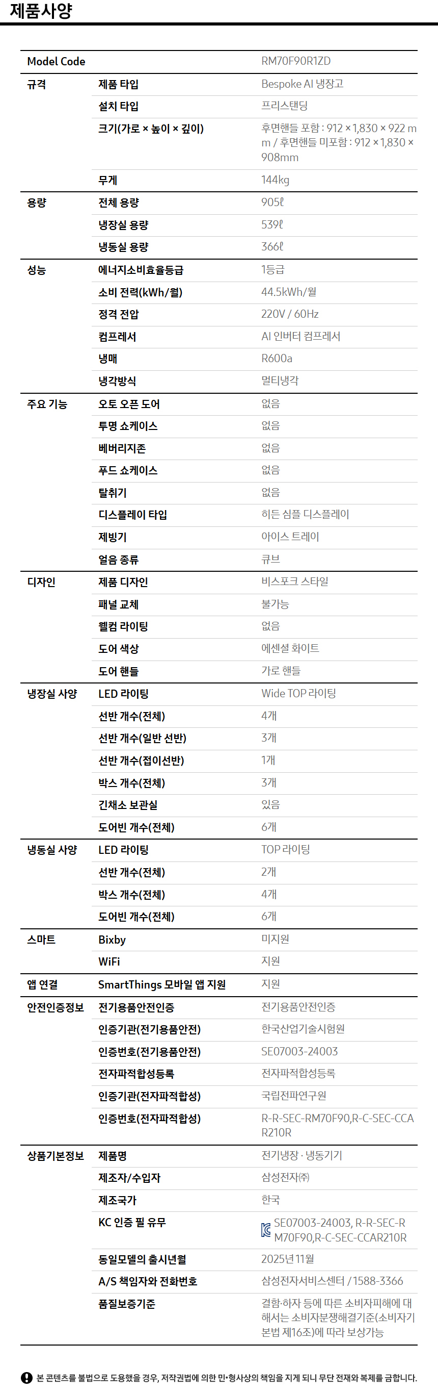 RM70F90R1ZD BS렌탈 [삼성] 비스포크 AI 냉장고 905L 에센셜화이트 제품분류 냉장고 용량(총량) 900L이상 기능 4도어 최저 렌탈가 월 52,900 (렌탈가) 제휴카드 할인가 월 (렌탈가) 5년 할인 제휴카드 보기 렌탈신청 장바구니