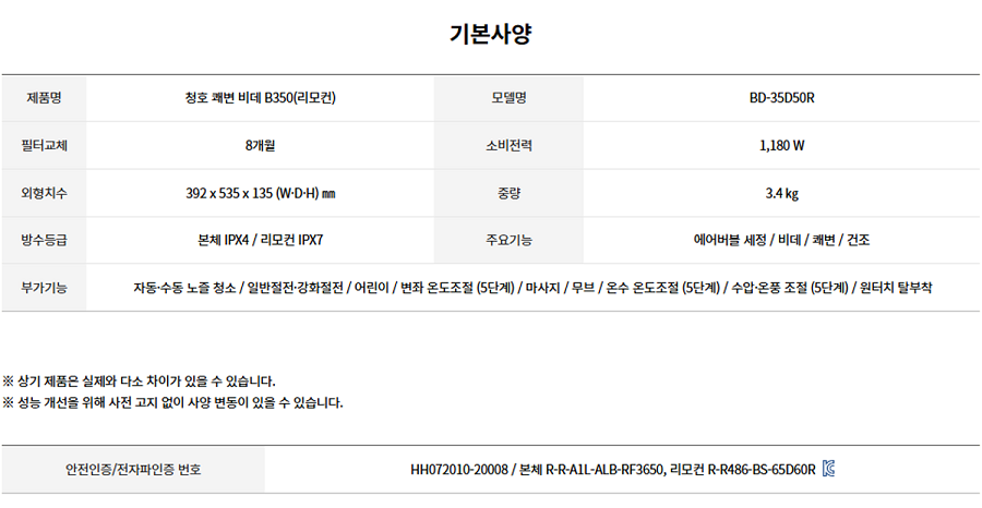 BD-35D50R 청호나이스 [청호나이스] 쾌변 건조 비데 B350 + 리모컨 제품분류 비데 A/S기간 렌탈기간내 최저 렌탈가 월 17,900 (렌탈가) 제휴카드 할인가 월 (렌탈가) 3년 4년 방문관리/4개월 할인 제휴카드 보기 렌탈신청 장바구니