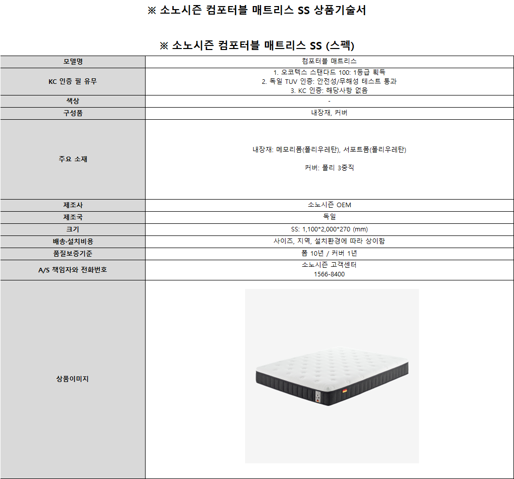 소노아임레디 [소노시즌] 컴포터블 매트리스 SS 제품분류 가구/침대 최저 렌탈가 월 33,000 (렌탈가) 제휴카드 할인가 월 (렌탈가) 1-200회 할인 제휴카드 보기 렌탈신청 장바구니
