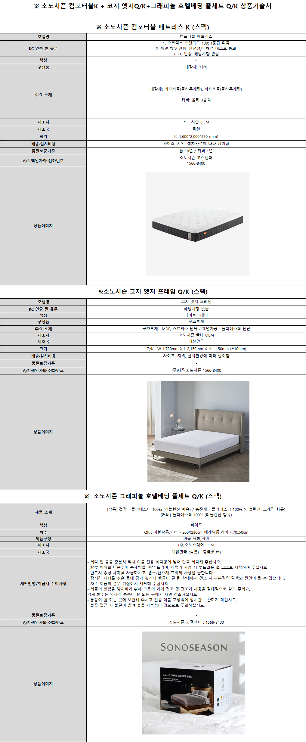소노아임레디 [소노시즌] 컴포터블 매트리스 K + 코지 엣지 프레임 Q/K + 그래피놀 침구세트 Q/K 제품분류 결합상품 최저 렌탈가 월 66,000 (렌탈가) 제휴카드 할인가 월 (렌탈가) 1-200회 할인 제휴카드 보기 렌탈신청 장바구니