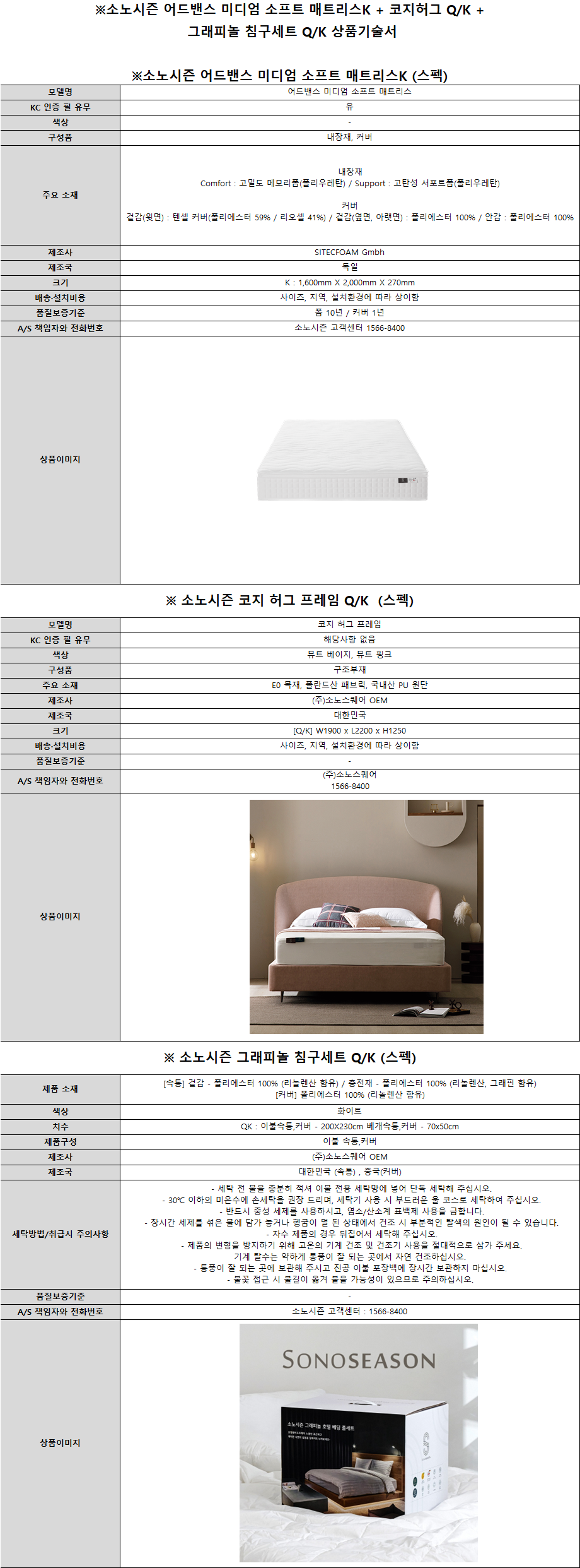 소노아임레디 [소노시즌] 어드밴스 미디엄 매트리스 소프트 K + 코지허그 프레임 Q/K + 그래피놀 침구세트 Q/K 제품분류 결합상품 최저 렌탈가 월 99,000 (렌탈가) 제휴카드 할인가 월 (렌탈가) 1-200회 할인 제휴카드 보기 렌탈신청 장바구니